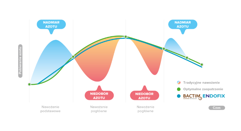 BACTIM® ENDOFIX to doskonałe rozwiązanie w przypadku ograniczenia dawek azotowych nawozów posypowych. Sprawdza się również w warunkach suszy oraz ograniczonego pobierania składników pokarmowych z gleby. Produkt BACTIM® ENDOFIX to również ubezpieczenie na wypadek możliwości wystąpienia głodu azotowego w trakcie wegetacji, który może drastycznie obniżyć plon. Zapewnienie dostaw łatwo przyswajalnego azotu na stałym poziomie zapobiega okresowym niedoborom i stratom w plonie.