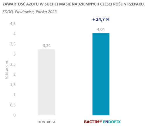 BACTIM® ENDOFIX to innowacyjny, wszechstronnie przebadany produkt zawierający endofityczną bakterię, która wnika do wnętrza roślin i zaopatruje je w azot. Zawarta w produkcie bakteria Paenibacillus polymyxa wnika do roślin i kolonizuje przestrzenie międzykomórkowe. Proces ten trwa przez cały sezon – od momentu aplikacji aż do zbioru. Bakteria redukuje azot atmosferyczny (N₂) do łatwo przyswajalnej dla roślin formy amonowej (NH₄⁺). Zaopatruje ona uprawy w ten plonotwórczy pierwiastek niezależnie od przebiegu pogody.