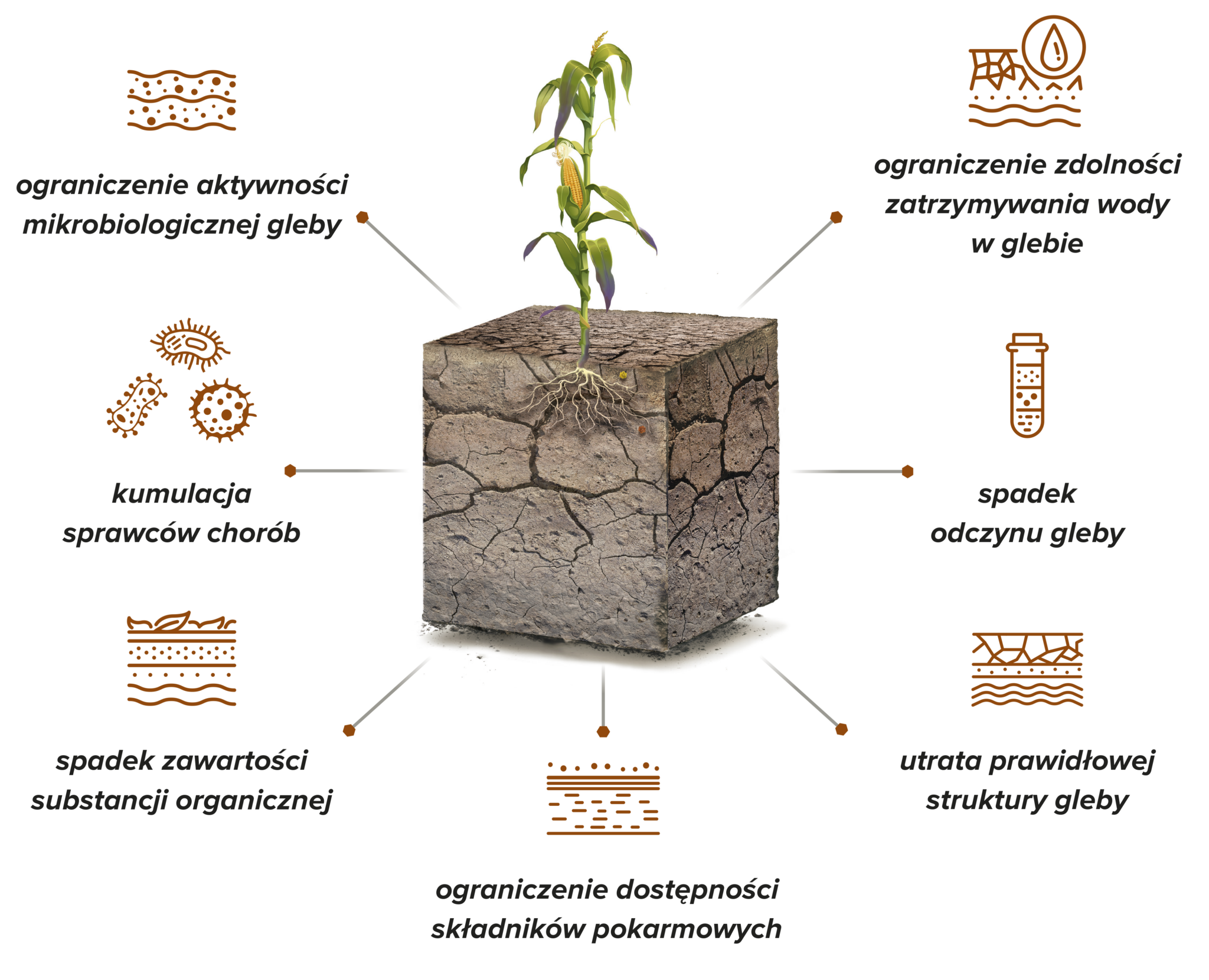 Głównymi przyczynami degradacji gleb są nasze działania związane z intensywną uprawą roślin i ograniczeniami w płodozmianie: