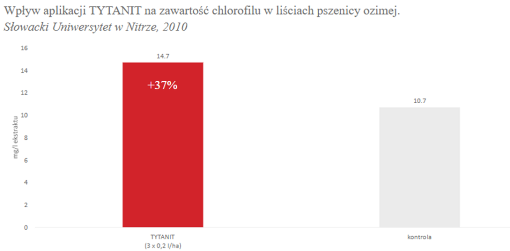 TYTANIT® pełni w tym zakresie rolę skutecznego stymulatora procesów fizjologicznych. Jego działanie koncentruje się na zwiększeniu intensywności fotosyntezy, co potwierdza wzrost zawartości chlorofilu w liściach nawet o 20–35%. Przekłada się to bezpośrednio na większą produkcję asymilatów i szybszy przyrost biomasy.