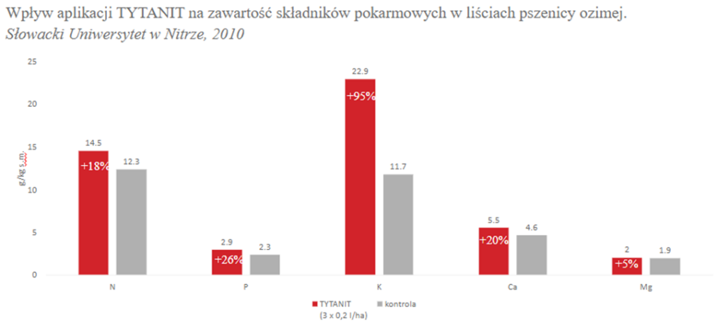 TYTANIT® wspiera również efektywniejsze wykorzystanie składników pokarmowych pobieranych z gleby, poprawiając nie tylko samo pobieranie, ale także wykorzystanie składników pokarmowych w metabolizmie rośliny. W warunkach polowych często ma to większe znaczenie niż zwiększanie dawek nawozów.