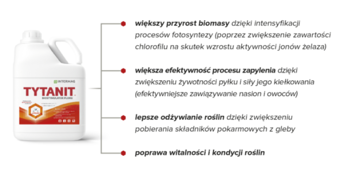 Pobieranie składników pokarmowych z gleby oraz intensywność fotosyntezy można dodatkowo zwiększyć poprzez dostarczenie roślinom tytanu. Pierwiastek ten jest powszechnie obecny w glebach, jednak najczęściej w formach słabo dostępnych dla roślin.