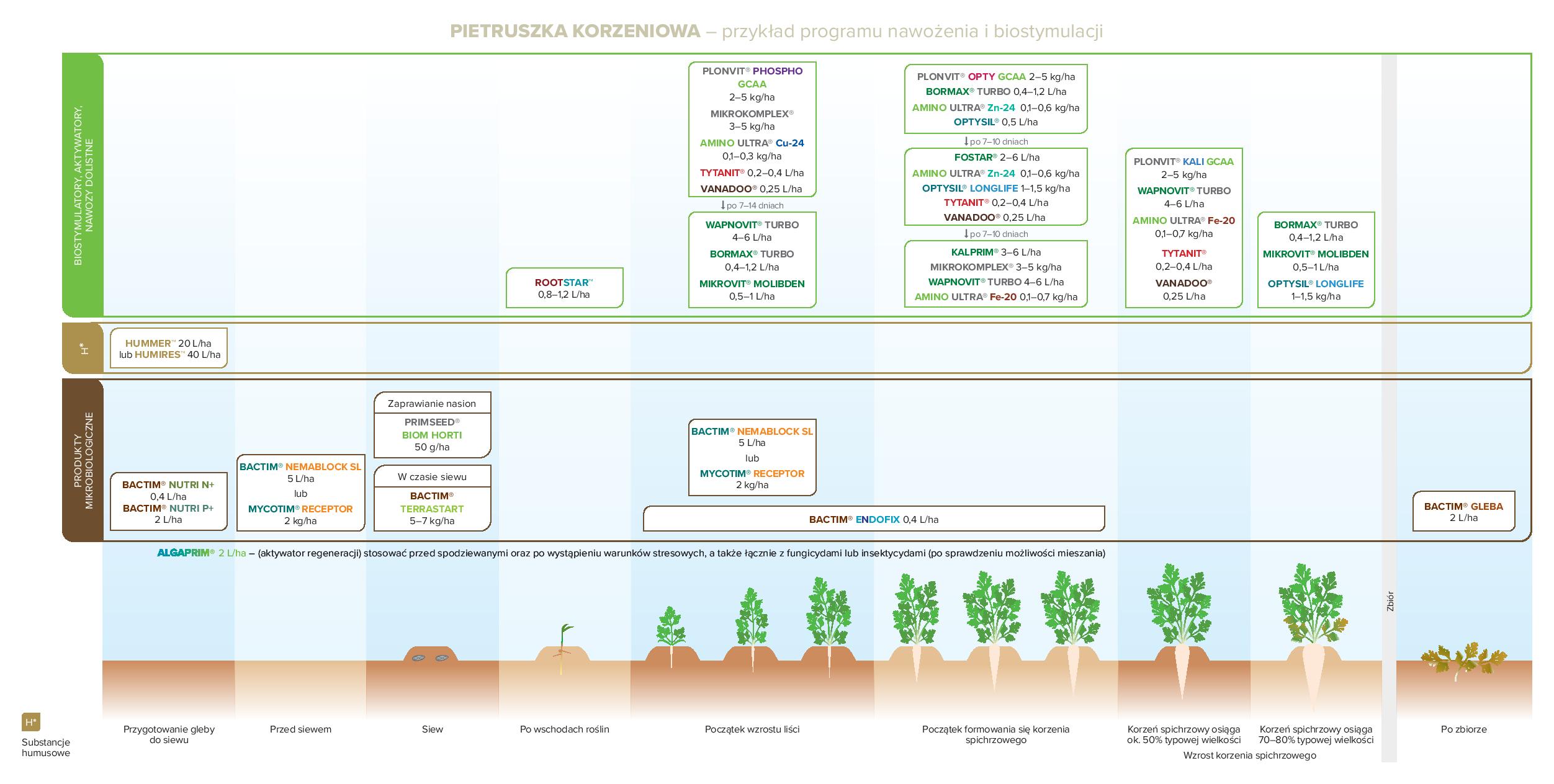 Optymalna dostępność składników pokarmowych dla roślin w ciągu całego okresu wegetacji, to jeden z podstawowych warunków uzyskania wysokich plonów o wymaganej jakości korzeni (i/lub naci).
